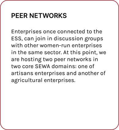 SEWA Enterprise Support System (ESS) is a branch of the SEWA movement, with the purpose of incubating and accelerating more women-run collective enterprises. The focus group of the ESS is women workers in the informal economy, both urban and rural, and their micro and collective enterprises. Since most of our members have never been business owners themselves, SEWA supports in organising groups in a community, building their operational capacities and then registering collective businesses.